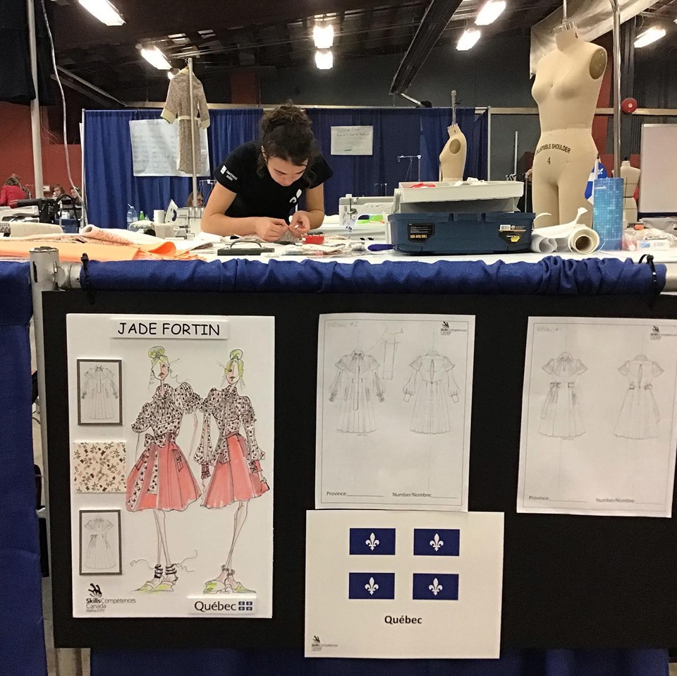 Jade Fortin, médaillée d’or et médaillée pour le meilleur résultat de sa province, toutes disciplines confondues en Mode et confection de vêtements sur mesure, Centre de formation Compétences-2000.